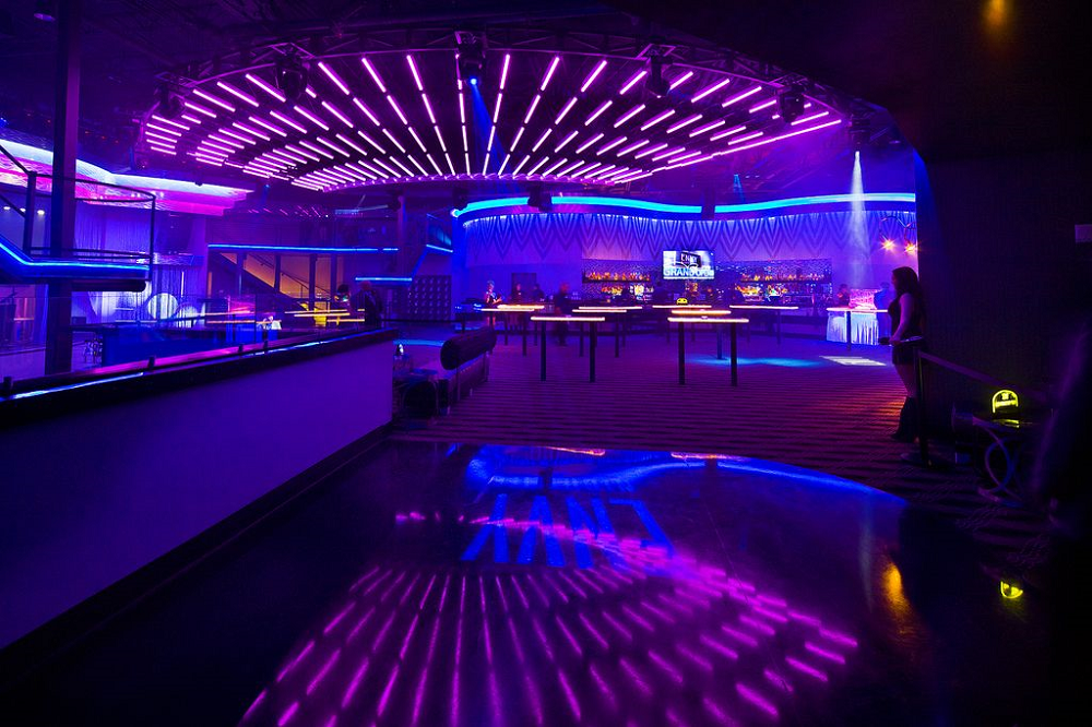A club known for neon waves running across the ceiling.
